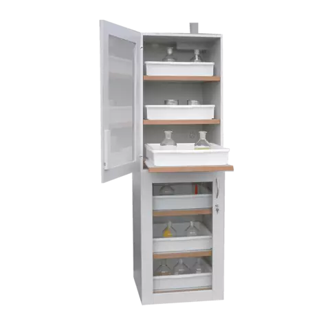 Les acides et alcalis sont des substances corrosives qui doivent être stockées séparément pour éviter les réactions chimiques et exothermiques. Nos armoires à acides et alcalis apportent la solution parfaite pour un stockage combiné. Vous avez le choix entre des armoires à tiroirs télescopiques et des armoires combinant tiroirs télescopiques et tiroirs coulissants ordinaires. Leur construction en panneaux HPL est le gage d’une longue durée de vie.