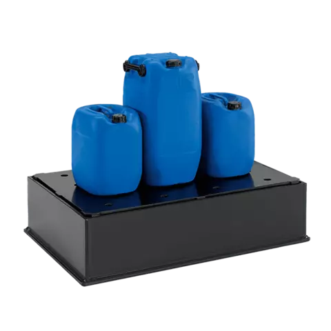 Les bacs de rétention en PEHD offrent une résistance aux produits corrosifs et mordants encore plus élevée que les bacs de rétention en matière plastique ordinaires. Ce qui permet de les utiliser pour une gamme encore plus étendue de substances chimiques. Un autre avantage réside dans la possibilité de produire ces bacs sur mesure. Avec caillebotis en PE-HD.