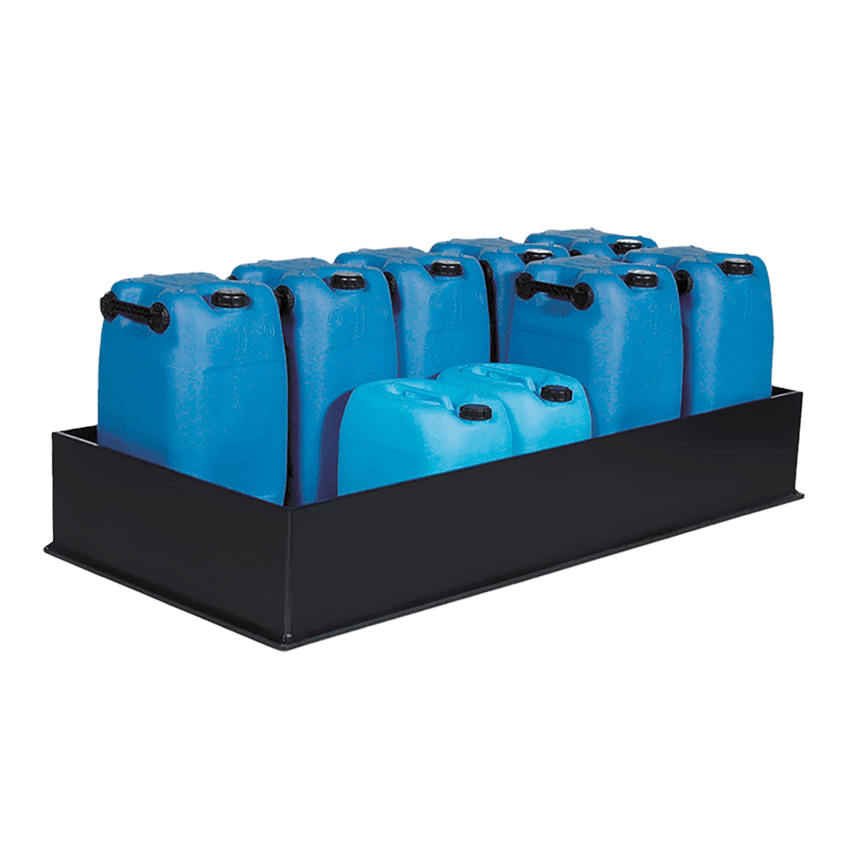 Les bacs de rétention en PEHD offrent une résistance aux produits corrosifs et mordants encore plus élevée que les bacs de rétention en matière plastique ordinaires - ce qui permet de les utiliser pour une gamme encore plus étendue de substances chimiques. Un autre avantage réside dans la possibilité de produire ces bacs sur mesure.