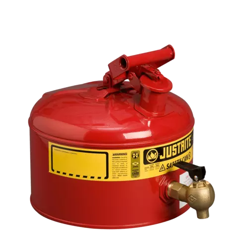 Door de werkposten te voorzien van een kleine en beperkte dagvoorraad wordt veelvuldig intern transport met gevaarlijke vloeistoffen tot een minimum beperkt. Echter het aftappen vanuit deze recipiënten dient ook veilig te gebeuren. Onderstaande veiligheidskannen zijn uitgerust met een zelfsluitende tapkraan om kleine hoeveelheden ergonomisch te verdelen.
