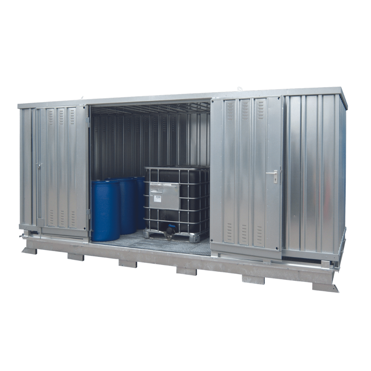 Deze betreedbare stalen opslagcontainers zijn speciaal ontwikkeld voor de buitenopslag van (milieu) gevaarlijke stoffen conform dde wettelijke regels. De milieucontainers kunnen eenvoudig leeg verplaatst worden met heftruck of kraan. Uitgerust met rekken en tal van opties zijn deze betreedbare milieucontainers multifunctioneel inzetbaar. Kies voor deze types met extra ventilatie-openingen net boven en rondom rond de opvangbak om de opstapeling van schadelijke dampen in de container te vermijden. Bij deze types is geen extra geforceerde ventilatie meer nodig.