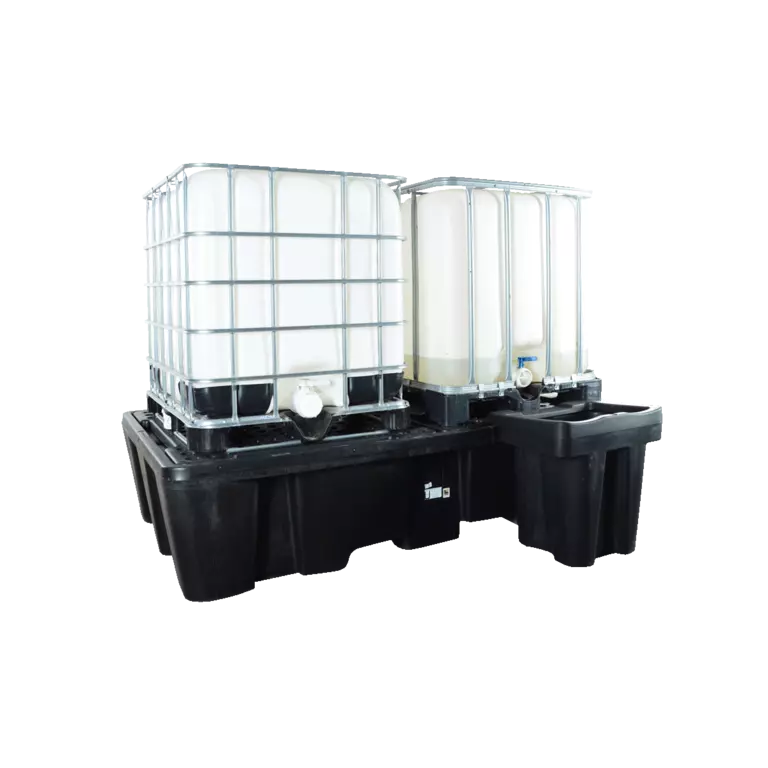 Zéér sterke kunststof opvangbakken geschikt voor de inpandige opslag van 1 of 2 IBC's met een opvangcapaciteit conform Vlarem. Ideaal voor de opslag van chemicaliën en milieugevaarlijke vloeistoffen in IBC's. Er zijn types beschikbaar met of zonder roostervloer.