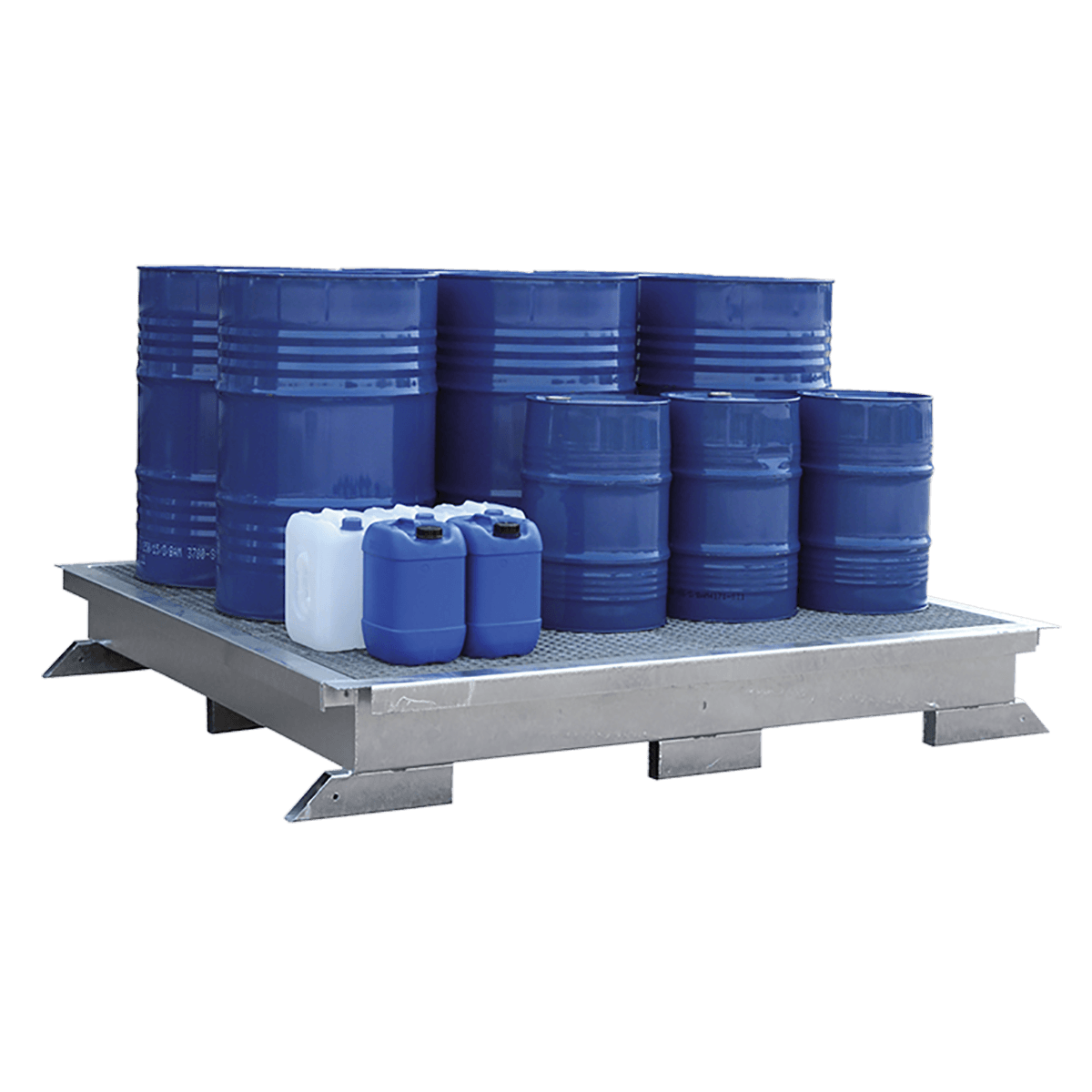 Deze opvangbakken hebben een zéér grote opvangcapaciteit en een ruim opstelvlak waardoor ze voor verschillende recipiënten kunnen worden gebruikt. Door de vrije onderrijhoogte kunnen deze eenvoudig worden verplaatst met een heftruck. Er is optioneel ook een verzinkt stalen oprijplaat verkrijgbaar voor het ergonomisch plaatsen van recipiënten met een vatenkar.