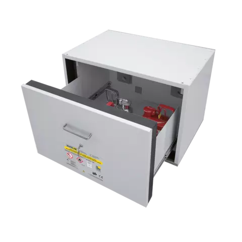 Brandwerende onderbouw veiligheidskasten zijn lage veiligheidskasten die speciaal zijn ontwikkeld voor installatie onder werktafels en zuurkasten. Ze zijn een ideale oplossing om kleine hoeveelheden ontvlambare vloeistoffen op te slaan bij de plaats van gebruik. Zo zijn ze vaak terug te vinden in een laboratoria, onderzoekscentra, scholen, etc.