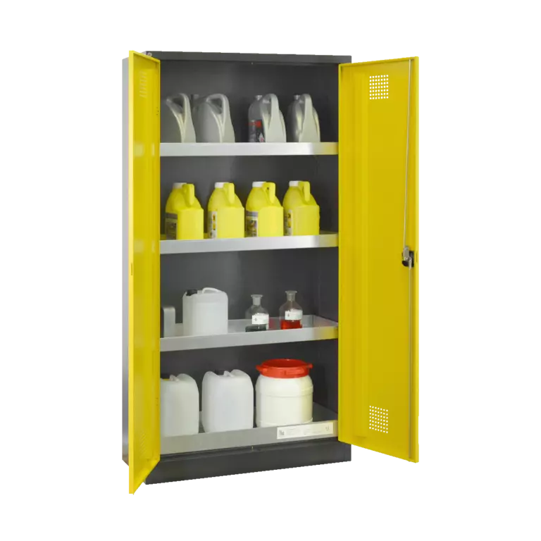 Stockeer uw milieuschadelijke stoffen conform de regelgeving. Deze kasten zijn geschikt voor alle milieuschadelijke stoffen zoals oliën, chemicaliën en giftige stoffen. Ze zijn echter niet geschikt voor de opslag van ontvlambare vloeistoffen.
