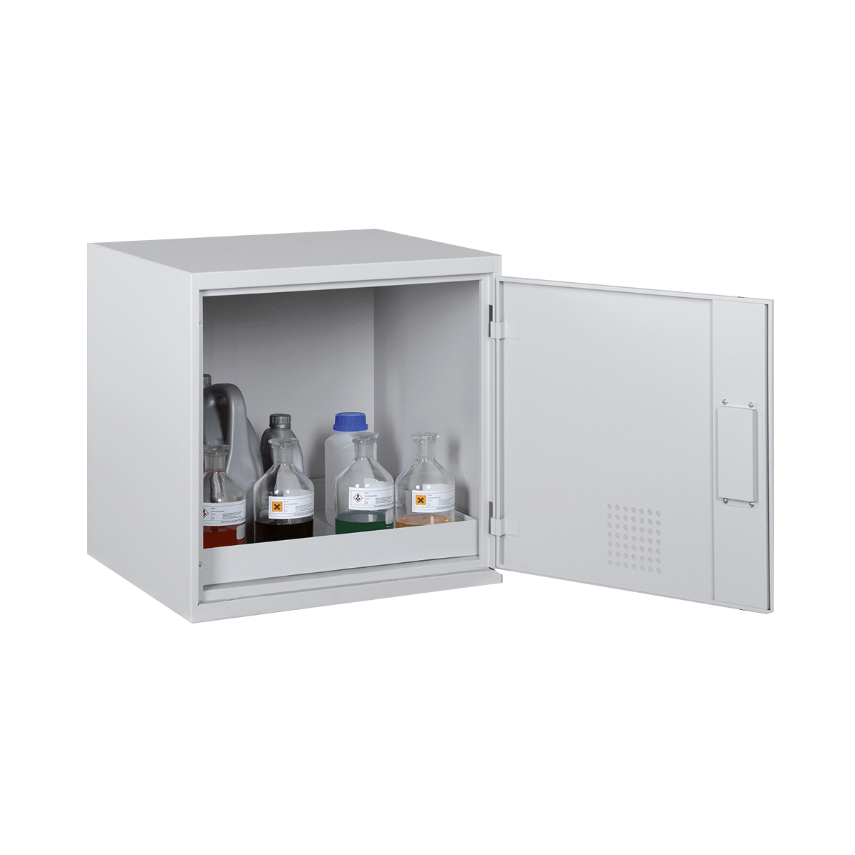 Lage chemicaliënkasten voor de opslag van kleine volumes schadelijke vloeistoffen. Deze kasten worden vaak toegepast onder werktafels of onder zuurkasten. Zo is de kleine chemicaliënvoorraad aanwezig dicht bij de plaats van gebruik.